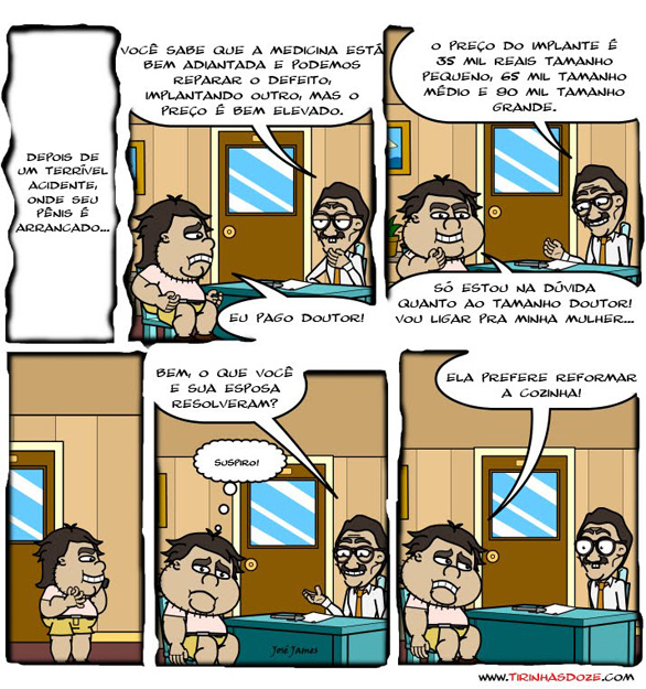 — Olha, filha... Eu posso até te dar o perdão dos seus pecados... Mas nunca se esqueça de uma coisa... A sua igreja é esta aqui!